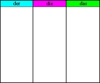 Clasifique las palabras por géneros. Si es correcto, el fondo se pondrá del color correspondiente. Si no sucede esto, mueva la palabra dentro de la columna hasta que